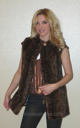 норковая безрукавка, жилет из новой коллекции весна 2014, размер 42, 44, 46. Норка канадская, цвет темно коричневый с затемненной спинкой, разновидность – даун. Воротник - стойка, под горло застегивается на красивую клипсу со стразами.