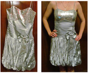 Продам выпускное платье серебристого цвета. Короткое, на бретельках. На груди паетки. Носилось 1 раз с момента покупки. В очень хорошем состоянии..