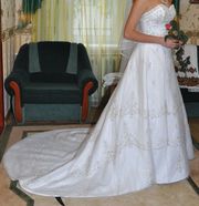 Весільна сукня білого кольору. Розмір 42-44. Ріст 170 -180 см. Вдівалася один раз..